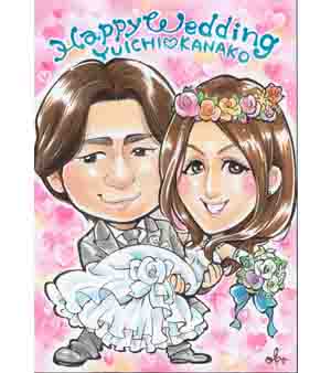 かわいくてソックリな似顔絵で、結婚式を彩ります!結婚式での似顔絵の需要は多くて、式場に飾るウェルカムボード、ご両親への贈呈似顔絵、披露宴でのライブスケッチ、ご結婚される方への結婚祝いなど、様々な用途でご利用いただいております。